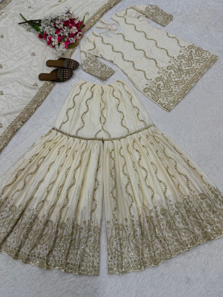 Sharara Fabric : Heavy Chinon Silk With Embroidery 5mm Sequence Work (Fully Stiched )